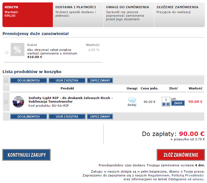 Po dodaniu wybranych produktów do koszyka możemy sprawdzić jego zawartość oraz uzupełnić szczegóły zamówienia - np. dodać komentarz.