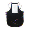 Afrundet køkkenforklæde med printlomme - sort med farvet piping - hvide slaviske blomster