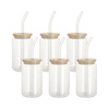 Set of 6 - 400 ml glasses with a straw and a bamboo lid for sublimation