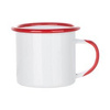 Smaltovaný hrnček 360 ml s červeným okrajom a očkom na sublimáciu
