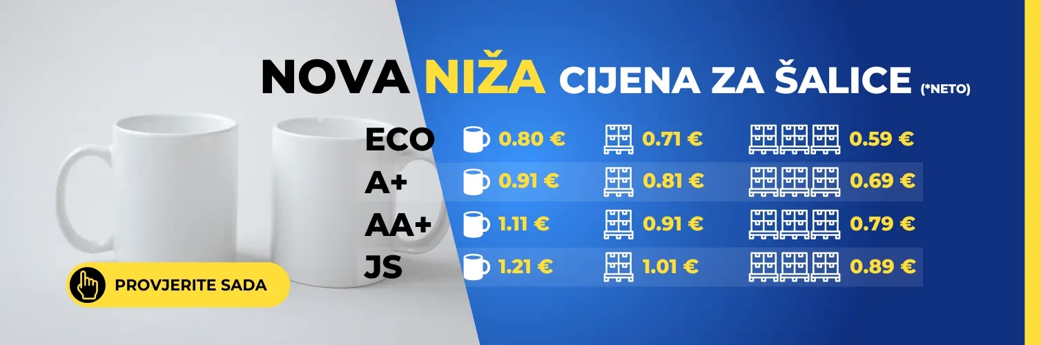 U našoj tvrtki pronaći ćete sve za sublimaciju na jednom mjestu, sublimacijske tinte, transfer papir, sublimacijski papir. Samo ovdje možete pronaći sve potrebne proizvode za sublimacijski tisak. Redovito imamo na zalihi sublimacijske proizvode: preše za termalni transfer, sublimacijski pisači, sublimacijske tinte, sublimacijski papir, transfer papir, sublimacijske šalice, Majice kratkih rukava, reklamni gadgeti, sublimacijski list, pribor za pametne telefone.