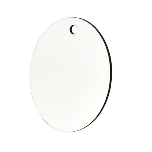 Oval MDF-juletræspynt vedhæng til sublimeringstryk. Side til sublimering i hvid, anden side i brun.