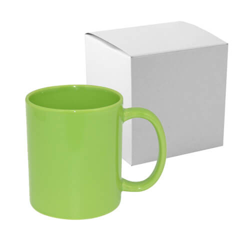 Fuldfarvet krus - lysegrønt blankt til termotransfer med papkasse