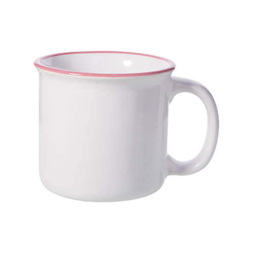 Keramisk emaljekrus 300 ml til sublimering - hvid med pink kant