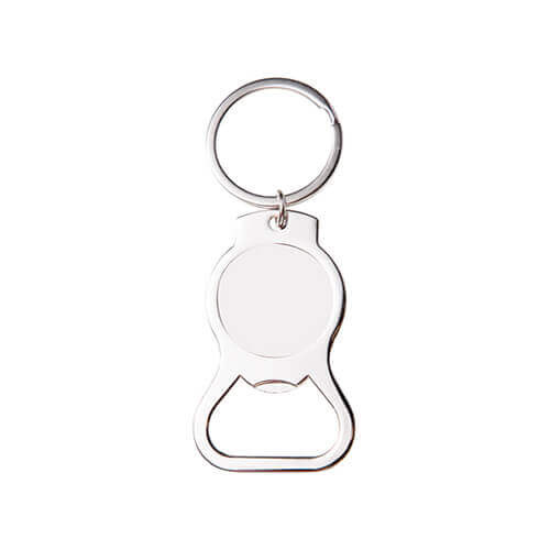 Metalnøglering - oplukker til sublimationstryk. Trykket laves på en metalplade, der er fastgjort til nøgleringen, og som skal limes fast i et felt, der er fræset ind i nøgleringen. Nøgleringen er pakket i en dekorativ æske med en sort fløjlsindsats til at sætte nøgleringen fast i. Det færdige produkt er velegnet som en original gave osv.