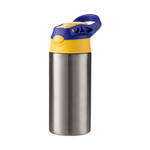 Børneflaske i rustfrit stål på 360 ml til sublimering - sølv med gul og blå hætte