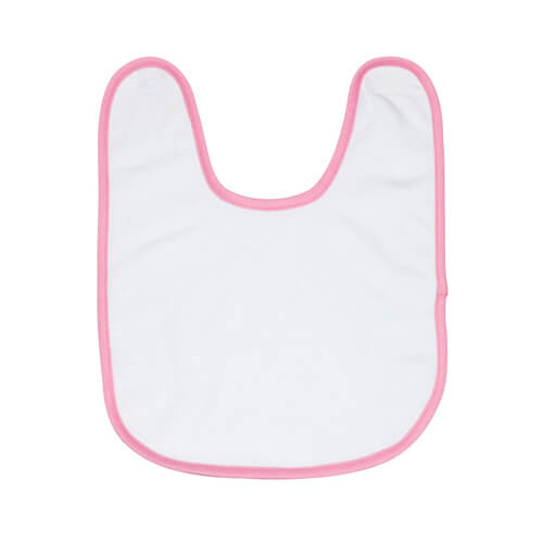 Witte badstof slab voor kinderen afgewerkt met een roze bies voor sublimatie printen.