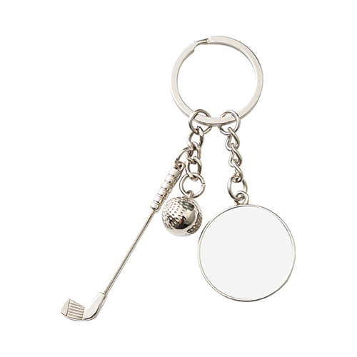 Metallinen avaimenperä, jossa on pallo ja golfmaila sublimaatiota varten
