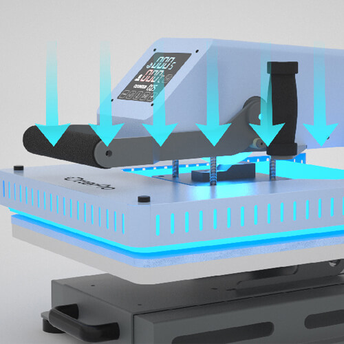 La conception conviviale permet d'installer les articles en toute sécurité avant de les repasser, ce qui permet d'éviter les brûlures et les blessures lors de l'installation. Équipé d'un système de roulement excentrique à haute pression, il assure une distribution uniforme de la chaleur et de la pression sur les substrats, garantissant ainsi des résultats de transfert constants et de haute qualité à chaque fois. Excellent choix pour la sublimation, le vinyle à transfert thermique (HTV) et l'impression DTF.
