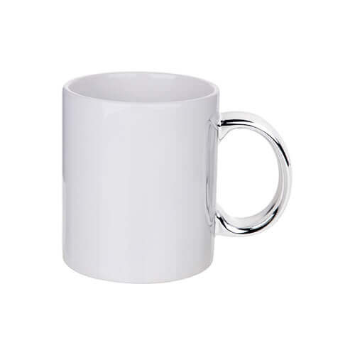 Λευκή κεραμική κούπα με ασημένια λαβή, βαθμού Α+ /μάθετε τι κάνει αυτό το κύπελλο τάξης διαφορετικό από τα άλλα/ πολυεστερική επίστρωση για εκτύπωση εξάχνωσης. Μπορεί να αγοραστεί από ένα τεμάχιο. Κούπα με κουτί από χαρτόνι.