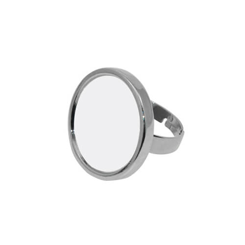 Kerek gyűrű, állítható szublimációs nyomtatáshoz. A lenyomat a gyűrűhöz rögzített fémlemezre készül, amelyet a gyűrűbe maratott mezőbe kell ragasztani.