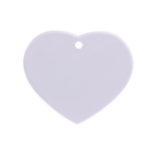 Szív alakú műanyag medál, lyukkal a szublimációs nyomtatáshoz.