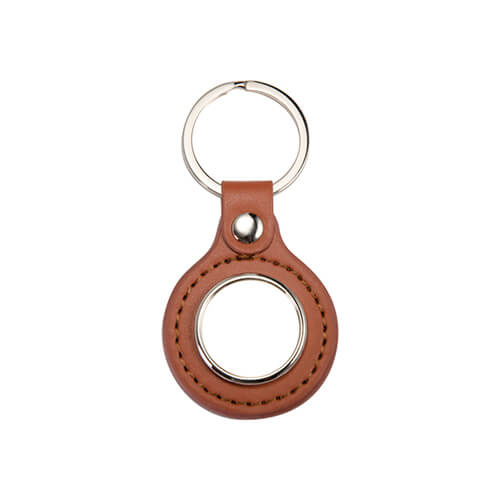 Bőr és fém kulcstartó szublimációhoz - kör - barna