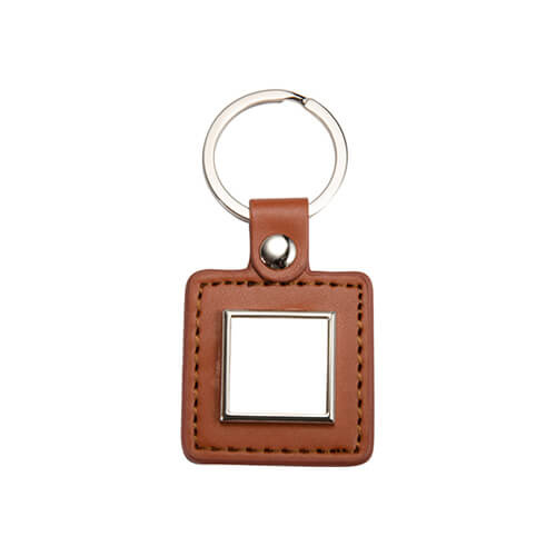 Bőr és fém kulcstartó szublimációhoz - négyzet alakú - barna