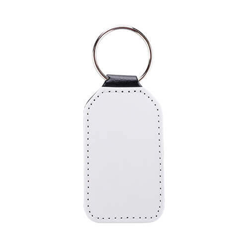 Bőr kulcstartó szublimációs nyomtatáshoz. Nyomtatható oldal fehér színben, másik oldal fekete színben. Kulcstartó fém, krómozott kulcstartó gyűrűvel.