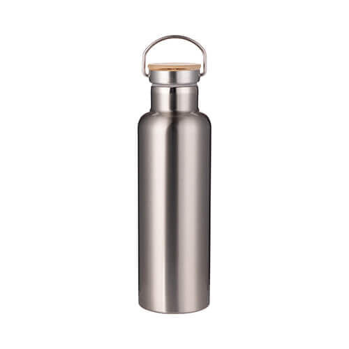 Rozsdamentes acél termosz 750ml bambusz kupakkal szublimációs feliratozáshoz - ezüst