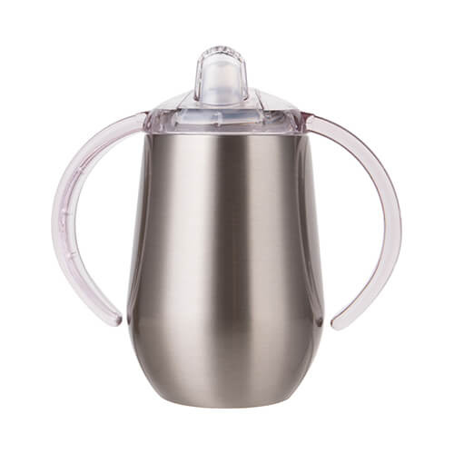 Baba csésze szublimációs nyomtatáshoz. Bögre műanyag záródással, kényelmes szájjal és szellőzővel, valamint két fogantyúval.