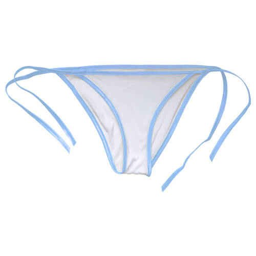 Női alsónemű szublimációs nyomtatáshoz. Univerzális méretű fenék - állítható. Sima, légáteresztő, pamutszerű poliészter kötésből készült, fényes szatén szegéllyel díszítve.