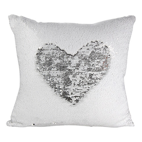 A párnahuzat egyik oldala fehér poliészterből készült, a másik oldala flitterekkel borított. A nyomtatás a párnahuzat teljes felületén elvégezhető. Párnahuzat cipzárral.