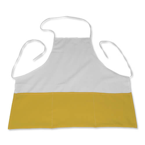 - Fehér konyhai kötény sárga zsebekkel szublimációs nyomtatáshoz