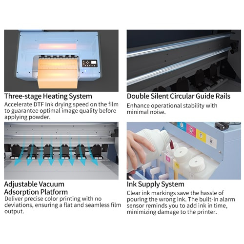 Szoftverrel együtt Otter RIP. Ez a szoftver jelentősen növeli a DTF nyomtatási projektek termelékenységét! Egyszerű, de hatékony kezelőfelülettel rendelkezik, amely lehetővé teszi, hogy könnyedén elsajátítsa a képszerkesztést és a tervezést. Ráadásul támogatja az automatikus többképes elrendezést és a duplikált nyomtatást, ami jelentősen növeli a termelékenységet. A kiváló színnyomtatás biztosítja, hogy a DTF nyomtatók azt az eredményt érjék el, amit látnak.