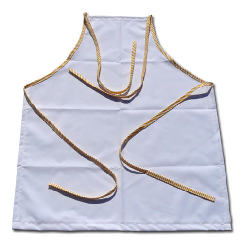 Prémium fehér konyhai kötény sárga csíkokkal díszítve a nyomtatáshoz szublimációs technológiával.