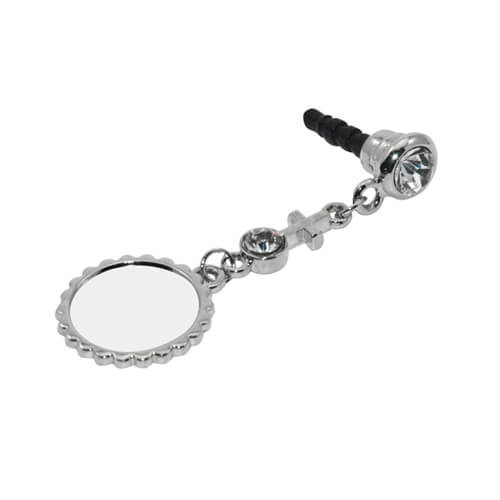 Praktisks austiņu kontaktligzdas vāciņš ar apļveida birku sublimācijas drukāšanai. Nokaramais vāciņš izceļ tālruņa individualitāti un vienlaikus pasargā austiņu ligzdu no putekļiem un citiem piesārņotājiem. Izdruka ir izgatavota uz piestiprinātas metāla plāksnītes, kas ir pielīmēta pie pakaramā pie gala vāciņa.