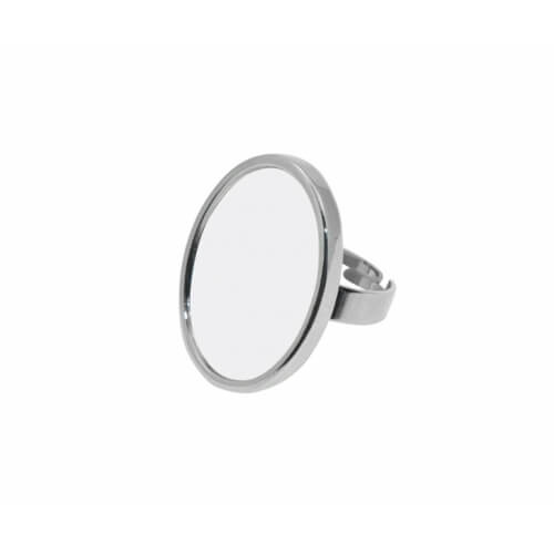 Apaļš gredzens, regulējams sublimācijas drukai. Nospiedums tiek veidots uz gredzenam piestiprinātas metāla plāksnītes, kas jāielīmē gredzenā izfrēzētā laukā.