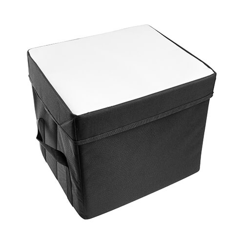 Sublimācijas drukas konteiners. Daudzfunkcionāls salokāms konteiners sīku priekšmetu, rotaļlietu, biroja piederumu, garderobes daļu u. c. glabāšanai. Salocīts aizņem ļoti maz vietas. Izgatavots no izturīga auduma, ar diviem rokturiem ērtai pārnēsāšanai. Drukāšana tiek veikta uz konteinera vāka.