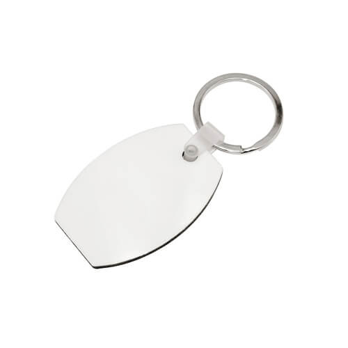 MDF privjesak za ključeve za sublimacijski tisak. Strana za tisak je bijela, druga strana je smeđa. Privjesak za ključeve s kromiranim metalnim privjeskom.