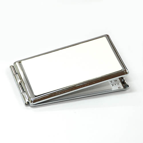 Srebrno, metalno ogledalo s mogućnošću zaključavanja i bilježnicom za sublimacijski tisak. Otisak se izvodi na priloženoj metalnoj pločici koja se lijepi na izrezano mjesto. Gotov proizvod može biti originalan poklon itd.