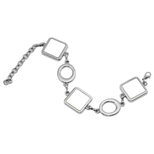 Srebrna metalna narukvica za sublimacijski tisak. Otisak se izvodi na priloženim metalnim pločicama koje se lijepe u izrezane prostore u narukvici.