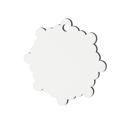 Božićni ukras u obliku pahuljice izrađen od MDF-a za sublimacijski tisak. Sublimacijska strana je bijela, a druga strana smeđa.