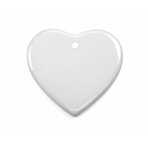 Keramička pločica u obliku srca s rupom, klasa A+, za sublimacijski tisak. Dostupno za kupnju u pojedinačnim količinama.