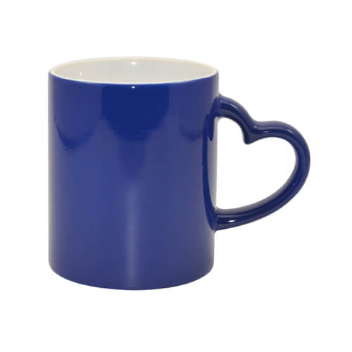 Čarobna šalica s ručkom u obliku srca, plava, sublimacija, termo transfer