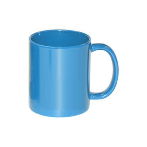 Šalica u punom koloru - plava, sjajna, presvučena slojem poliestera za tisak. Dostupna za pojedinačnu kupnju.