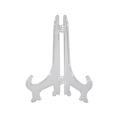 Plastični, sklopivi stalak za tanjure promjera do 18 cm, u crnoj boji. Stalak vam omogućuje izlaganje keramičkih i metalnih tanjura isključivo iz našeg asortimana.