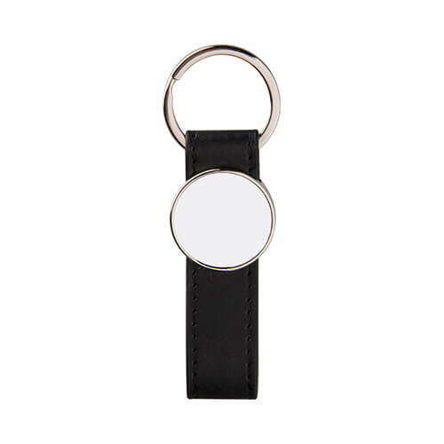 - Privjesak za ključeve od kože i metala za sublimaciju - krug - crni