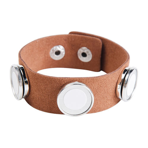 Narukvica od mekane brušene kože s tri okrugle pločice za sublimacijski tisak. Otisak je izrađen na priloženim pločicama koje su zalijepljene u odvojive kopče. Narukvica se kopča kopčom. Dva kopča omogućuju podešavanje veličine od 16,5 cm i 18 cm.