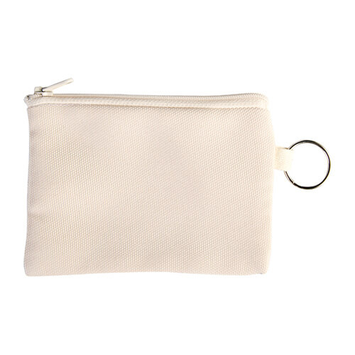 Mały portfel z kółkiem do kluczy do wykonywania nadruków w technologii sublimacji. Portfel zamykany na zamek błyskawiczny.