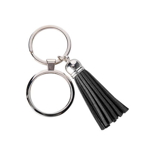 - Okrugli privjesak za ključeve s kratkim resama - crni za sublimaciju