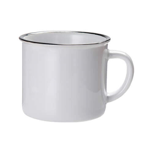 300 ml emajlirana keramička šalica za sublimaciju - bijela s crnim rubom
