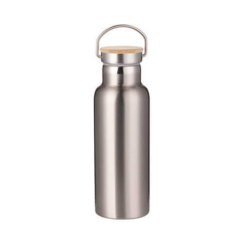 - Termoska boca od nehrđajućeg čelika od 500 ml s bambusovim poklopcem za sublimaciju - srebrna