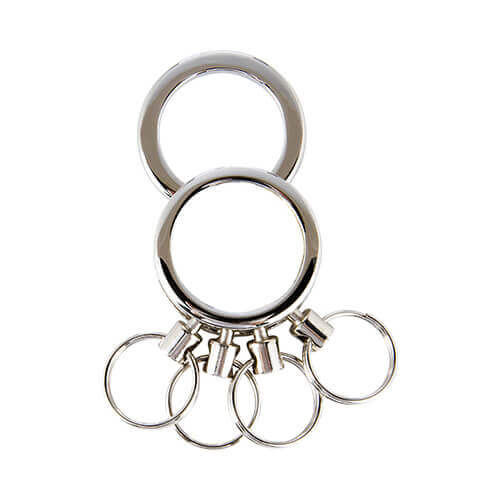 Metalni privjesak za ključeve za sublimacijski tisak. Ovaj privjesak ima 4 odvojiva prstena za ključeve. Otisak se izvodi na priloženoj metalnoj pločici koja se lijepi na izrezano područje na privjesku. Privjesak je pakiran u ukrasnu kutiju s crnim umetkom s efektom baršuna za pričvršćivanje privjeska. Gotov proizvod može biti originalan poklon itd.
