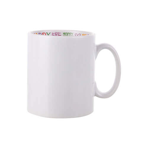 Bijela keramička šalica s unutrašnjošću za Sretan Majčin dan, klasa A+ /pogledajte što ovu klasu čini drugačijom od drugih/ obložena slojem poliestera za sublimacijski tisak. Dostupna za kupnju od jednog komada.