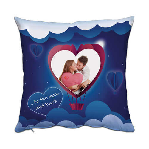 Dvobojna jastučnica s uzorkom "Srce" i okvirom za sublimacijski tisak. Jastučnica s patentnim zatvaračem.