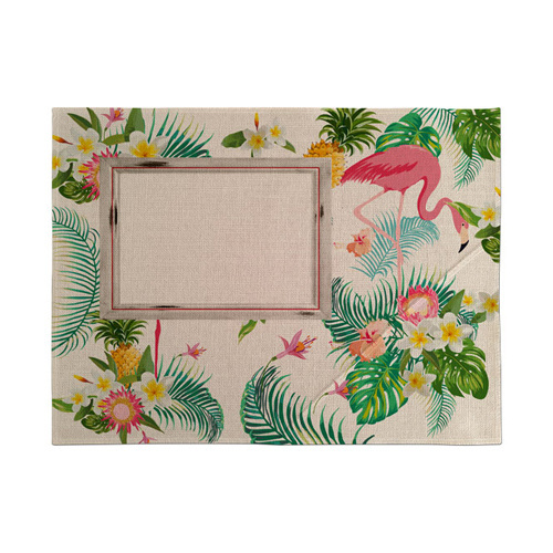 Platenski podmetač za stol s uzorkom "Flamingo" i okvirom za sublimacijski tisak.