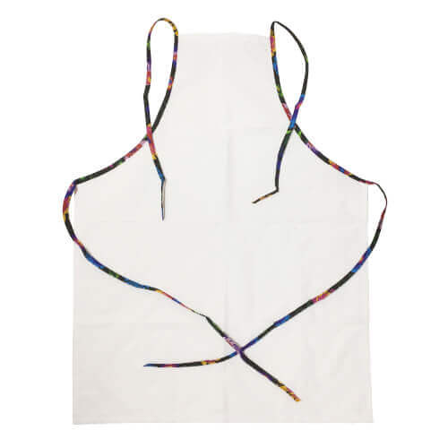 Bijela kuhinjska pregača s obojenim rubom za sublimacijski tisak.