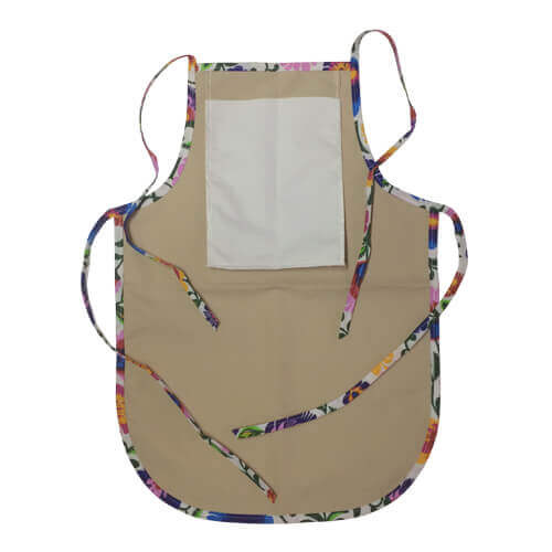 Dječja bež kuhinjska pregača s bijelim džepom za sublimacijski tisak.