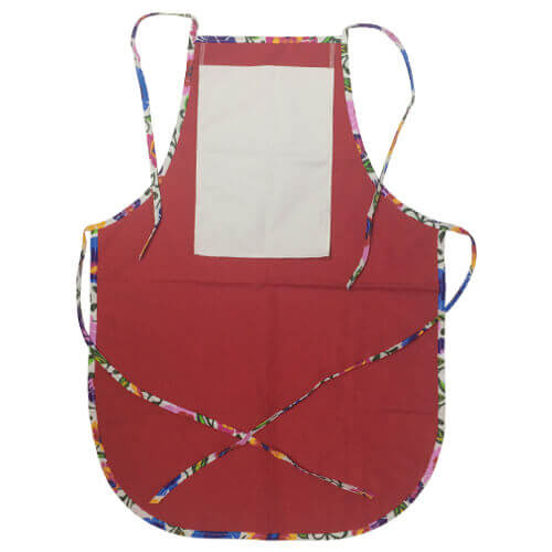 Crvena kuhinjska pregača s bijelim džepom za sublimacijski tisak.